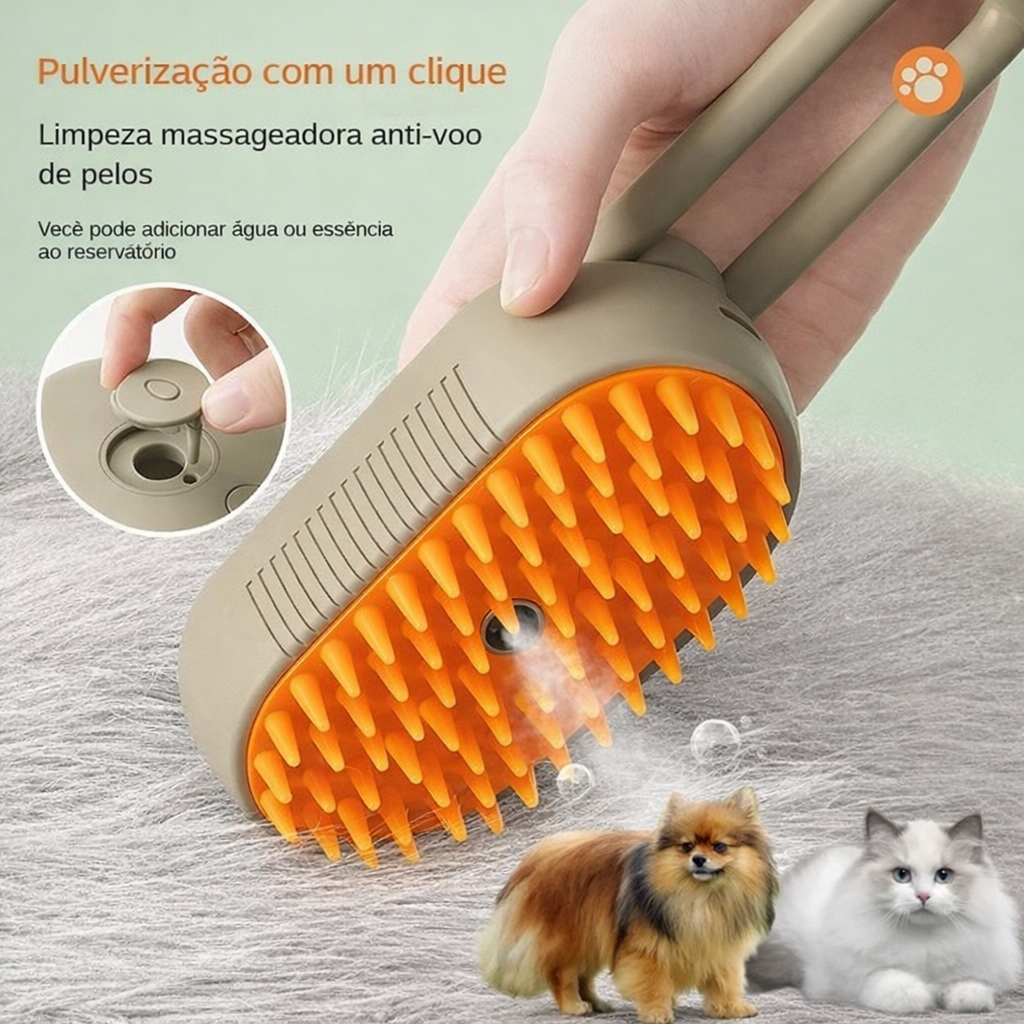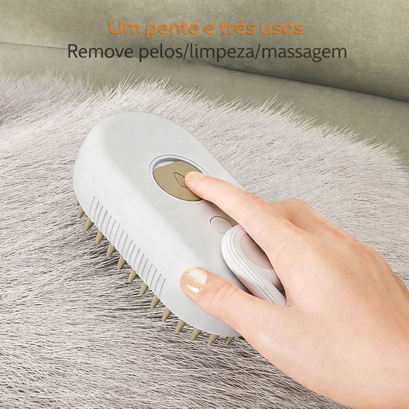 Ofereça o melhor cuidado para o pelo do seu pet com esta escova elétrica multifuncional 3 em 1, ideal tanto para cães quanto para gatos de todos os tamanhos e tipos de pelagem. Com tecnologia de spray a vapor integrado, ela transforma a rotina de escovação em um momento agradável, eficaz e confortável para o seu companheiro.